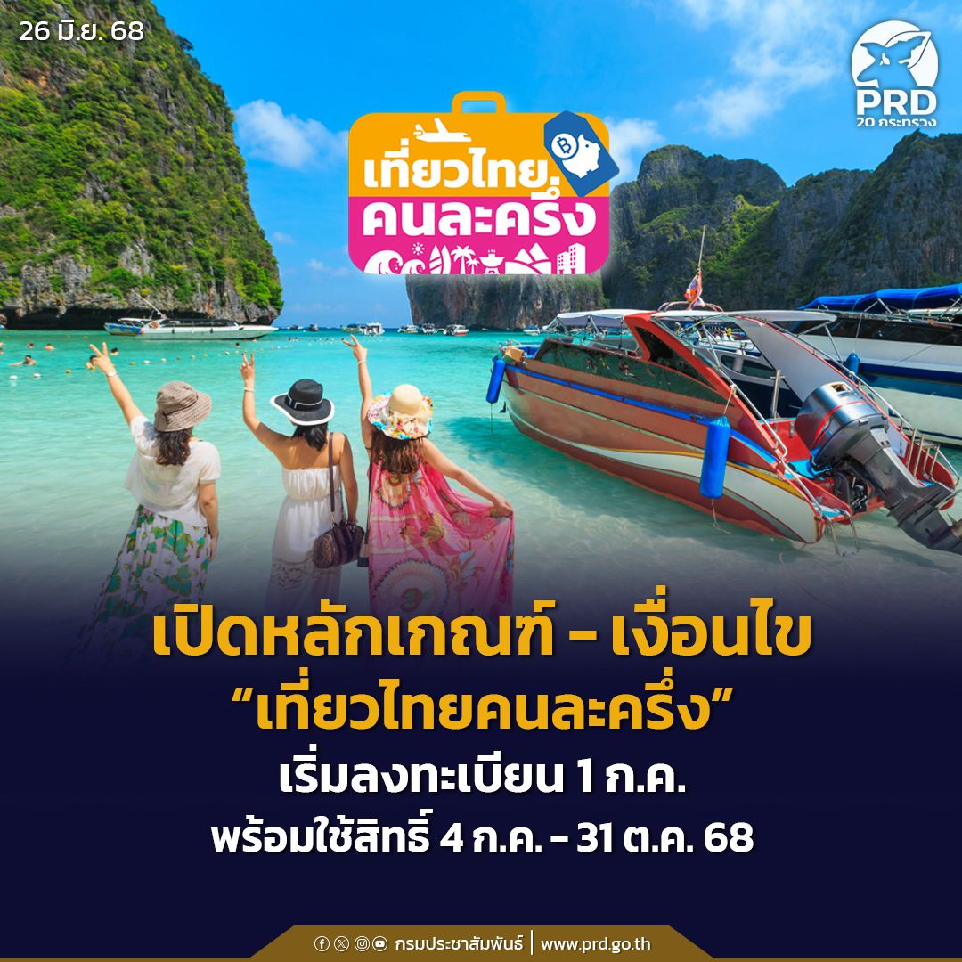 เปิดหลักเกณฑ์ – เงื่อนไข “เที่ยวไทยคนละครึ่ง” ประชาชนเริ่มลงทะเบียน 1 ก.ค. พร้อมใช้สิทธิ์ 4 ก.ค. – 31 ต.ค. 68 บทสรุป จากมติคณะรัฐมนตรีเห็นชอบกรอบการใช้งบประมาณเพื่อกระตุ้นเศรษฐกิจ รวมถึง โครงการ “เที่ยวไทยคนละครึ่ง” ของกระทรวงการท่องเที่ยวและกีฬา…