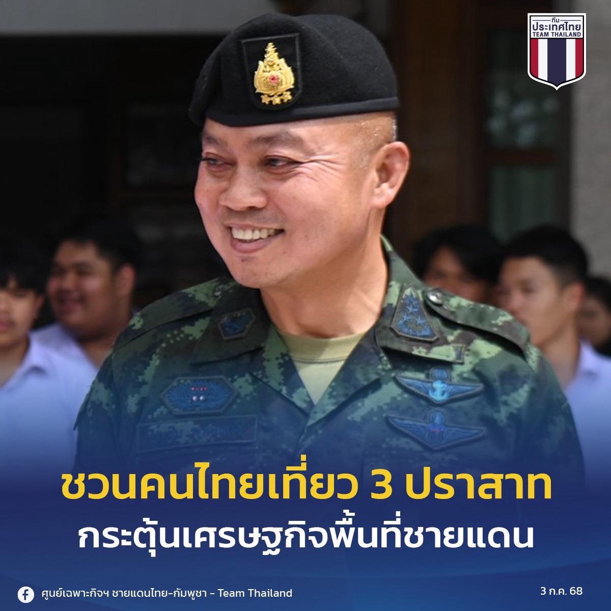 พลโท บุญสิน พาดกลาง แม่ทัพภาคที่ 2 เปิดเผยว่า ในช่วงที่ผ่านมามีประชาชนเดินทางมาเที่ยวชมและนำสิ่งของมามอบให้เป็นขวัญกำลังใจกับทหารซึ่งปฏิบัติหน้าที่ดูแลรักษาอธิปไตย ตลอดแนวชายแดนไทย – กัมพูชากันอย่างไม่ขาดสาย จึงขอใช้โอกาสนี้ เชิญชวนประชาชนคนไทยทั่วประเทศ เดินทางไปท่องเที่ยวแหล่งโบราณสถาน จุดชมวิวต่าง ๆ ตลอดแนวชายแดนไทย – กัมพูชา โดยเฉพาะที่อำเภอพนมดงรัก จังหวัดสุรินทร์ ที่มีปราสาทตาเมือนธม ซึ่งเป็นปราสาทหินที่งดงามด้วยสถาปัตยกรรมโบราณ สะท้อนถึงศิลปวัฒนธรรมและความเชื่อในศาสนาฮินดู ปราสาทตาควาย ปราสาทหินศิลาแลงที่อยู่ห่างจากปราสาทตาเมือนธมประมาณ 12 กิโลเมตร และปราสาทตาเมือนโต๊ด หนึ่งในอุทยานประวัติศาสตร์กลุ่มปราสาทตาเมือน เป็นต้น ซึ่งนอกจากจะได้ท่องเที่ยวแล้ว ยังได้ชมและเลือกซื้อของฝาก ผลิตภัณฑ์จากประชาชนตามร้านค้าเส้นทางต่าง ๆ ในพื้นที่อำเภอชายแดน ช่วยอุดหนุนสินค้าคนไทย และกระตุ้นเศรษฐกิจชายแดนไทยไปในเวลาเดียวกัน